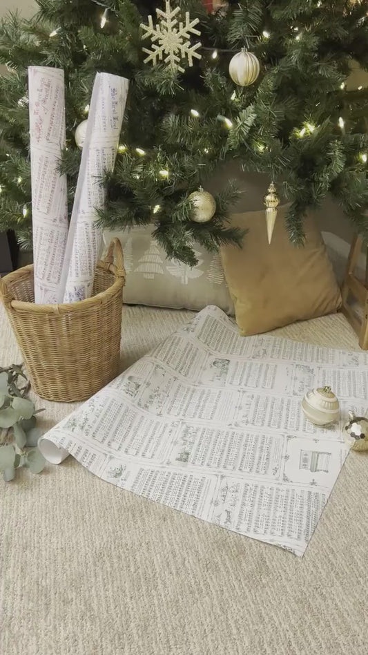 Christmas Carol Wrapping Paper Rolls | Green Vintage Holiday Music Sheets Gift Wraps