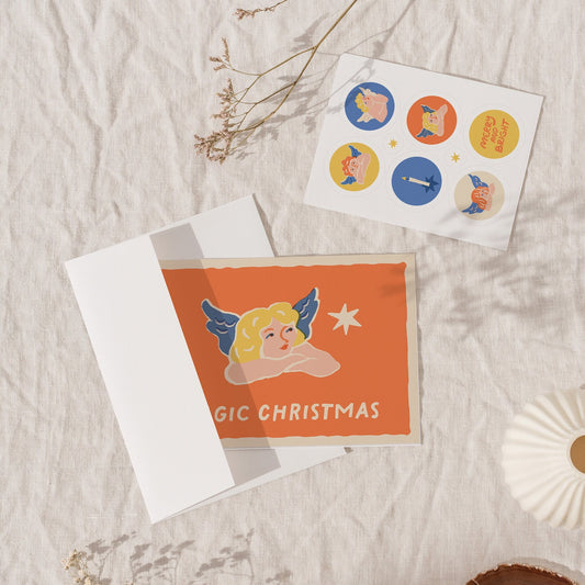 Angels Sticker Sheet For Greeting Card Envelope & Gift Wrapping Seals | Vintage Sticker Set, Magic Christmas Collection