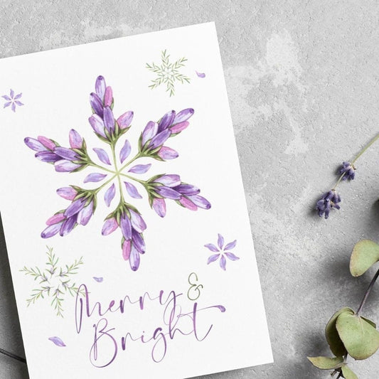 Lavender Snowflake Blossom Greeting Cards With Envelopes | Merry & Bright Flower Purple Christmas Holiday Card Pack, Set Of 5, 10, 25, 50